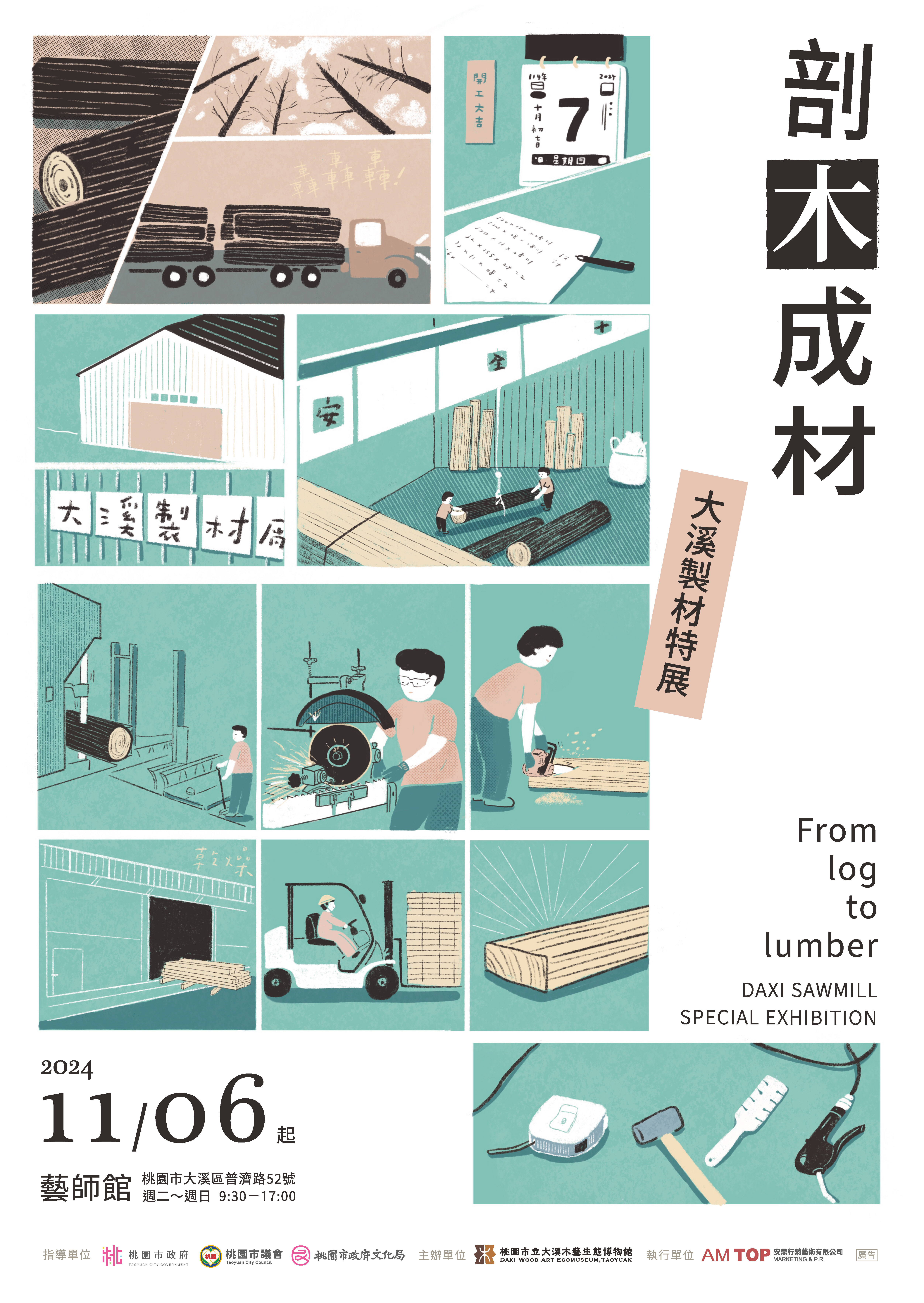 桃園市立大溪木藝生態博物館辦理「好木成森系列展 覽:坐的二十四式」、「剖木成材:大溪製材特展」等展覽,鼓勵師生踴躍參與。